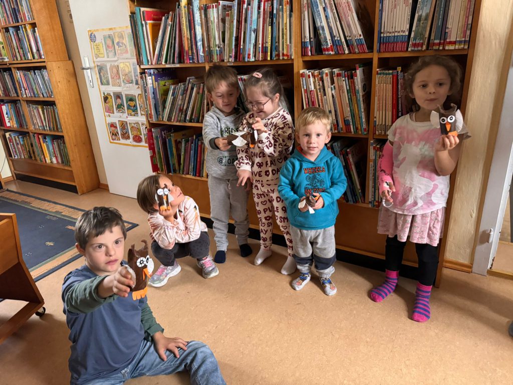 Die zweite Bücherreise in diesem Jahr gestaltete Ulrike Pany besonders liebevoll. Es drehte sich alles um’s Thema Eulen und die Kinder konnten selbst kleine Eulen aus Klopapierrollen basteln. Folgende Bücher wurden vorgelesen: